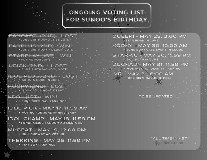 Ongoing votes! Make sure to vote and make sunoo win!